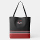 Modern Monogram Stripes Black Red Tote Bag