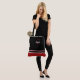 A chic, modern tote with bold colour blocking and elegant personalisation. This design features crisp black, red, and white stripes layered across a classic canvas silhouette, with a decorative red initial and your custom name in white script calligraphy.