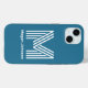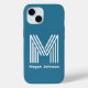This modern monogram teal blue iphone 15 case is trendy yet and classic. It features your first or last initial in a bold trendy font and your name in a coordinating classic font in white. It's simple and minimal, chic and stylish.