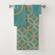 Love the colour teal blue but cannot find a towel set for your bathroom then look no further this set is it. I designed the bath towel and hand towel with an ornate gold picture frame then added the teal colour background. Monogram the hand towel with your initial. If teal is not a colour that you like then choose the colour that fit your needs.