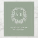 Modern Monogram Wedding Sage Green Crest Wine Label