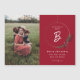 A Modern Monogram Wreath Photo Christmas Card featuring a vertical portrait photo with gold wire wreath and modern script monogram.