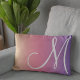 This modern lumbar pillow features a minimalist design with a white oversized monogram on a colourful yellow, pink, and purple gradient background.