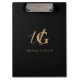 Modern Monogrammed Black and Gold Script Clipboard