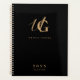 Minimalist gold monogrammed script against a black background. Easily customise name and monogram of choice on front and back.