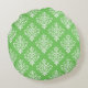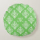 Modern Monogrammed Bright Green Damask Pattern Round Cushion