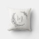 Modern Monogrammed Floral Wreath Calligraphy Cushion