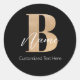Modern Monogrammed Initial B & Name Personalised Classic Round Sticker
