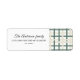 Featuring a clean, modern plaid design in soft sage green and beige tones, this label brings a touch of rustic elegance to your holiday cards, thank-you notes, or everyday correspondence.