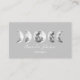 A business card featuring phases of the moon on a light grey background to give a sleek, modern look. Perfect for an astrologist or yoga instructor or other holistic healer.