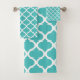 Modern Moroccan Pattern Bath Towels in a robins egg blue and white.