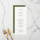 Modern Moss Green Botanical Floral Wedding Menu featuring your wedding menu on the front and a modern botanical line drawing and the couple's name and wedding date on the back. Perfect for a wedding reception, wedding dinner, rehearsal dinner or couple's shower. All colours can be changed if you like. This wedding menu card is part of a whole wedding stationery suite with matching items.