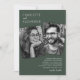 Minimalist wedding invitations featuring a botanical moss green background, a photo of the bride & groom, and a elegant modern text template with your wedding details. On the reverse is a full print photo for you to replace with your own.