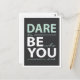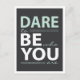Motivational inspirational words: "Dare to be who you are" on a dark grey background. Motivational words of wisdom. In this world, where we are constantly bombarded by the "rules" and trends and media information about how and who we should be and think, people can sometimes lost the courage to be their true self. But that's not ok, everyone should be brave enough to be exactly what they are. Because only to live by their true potential people can make this world a better and more sincere place to be. So dare to be who you are, because you are beautiful, special and unique, a true masterpiece and this world needs you exactly the way you truly are. So don't try to hide all this behind some artificial shell and mask other people tried to create for you. Modern unique graphic design text on a grey background.