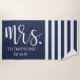 Modern Mrs. Script Nautical Navy & White Stripes Beach Towel
