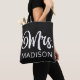 Modern Mrs White and Black Script Wedding Monogram Tote Bag