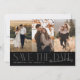 Elegant and stylish save the date card featuring a modern serif font that says "save the date" with your signature in a hand written style font. There are 3 photos on the front and one on the back. The background is black.