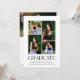 Announce your milestone with this modern multi-photo graduation party invitation featuring space for four senior portraits alongside bold "Graduate" typography. Clean black and white design lets your photos take center stage while keeping the layout polished and celebratory. Fully customizable text fields make it easy to share all your party details.