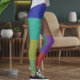 These bold multicolor leggings feature a modern knitting wool texture simulation in vibrant blue, brown, purple, red, and yellow rectangular blocks. The design visually mimics woven sweater fabric while staying lightweight, breathable, and stretch-comfortable for yoga, workouts, streetwear, or everyday lounging. This is a printed fabric simulation, not real wool. Soft, sculpting, and eye-catching—made for women who want standout athleisure with cozy style energy. Add instant color and movement to your wardrobe now.