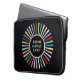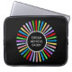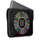 Modern elegant multicolored rays on black Laptop sleeve. Text can be personalised.