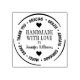 This modern "Thank You" Handmade with Love rubber stamp features a modern design with multiple languages and a custom name.