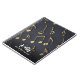 This modern and abstract design features broken gold music notes on a black background and custom text in white handwritten calligraphy script and typography. This is a great notebook for the music lover, music teacher, or musician.