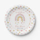 Modern Muted Rainbow Baby Shower Sprinkle Hearts Paper Plate
