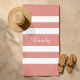 Modern Name Coral Pink Striped Pool Beach Towel