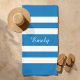 Personalized Modern Name French Blue Striped Pool Beach Towel.