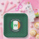 Modern monogram SHAMROCK square paper plates, designed with an all-over shamrock pattern against a dark green background. The Irish Flag is set within a circle. There is CUSTOMIZABLE curved text at the top and bottom of the circle, plus a MONOGRAM which is also customisable. This text can be replaced with a welcome message and/or personalised with your name, or name of your establishment. Ideal for your guests or patrons on St Patrick's Day.