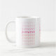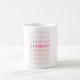 This personalised mug features a modern typography design with pink and coral text. Customise the text with your name or other text.