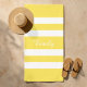 Personalized Modern Name Yellow Striped Pool Beach Towel.