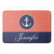 Modern Nautical Coral Blue Anchor Personalised Bath Mat