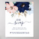 This modern nautical floral Oh Snap wedding hashtag sign is perfect for a cruise or beach wedding. The whimsical design features blush pink and navy blue watercolor flowers with gold starfish accents, giving it a beachy vibe. Personalize the sign with your wedding hashtag.