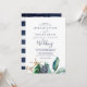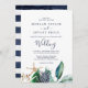 This modern nautical greenery wedding invitation card is perfect for a cruise or beach wedding. The botanical design features beautiful green leaves with navy flower and gold starfish accents, giving it a beachy vibe.