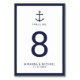 Modern Nautical Navy Blue Anchor Wedding Table Number