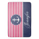 Modern red & blue nautical bathmat with custom text.