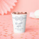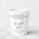 These modern nautical wedding rehearsal dinner paper cups feature a nautical rope knot at the top, with the phrase "the night before" in trendy handwriting script.
