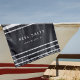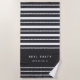 Upgrade your boat gear with this modern personalised beach towel featuring your yacht or boat name in clean white lettering with alternating solid white and nautical rope stripes.