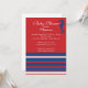 Modern Nautical seahorse Baby Shower Invitation set on a red background with a red, white and blue stripe boarder. Perfect for a baby boy baby shower or a baby. girl baby shower. Visit our shop to view our large selection of nautical sailboat baby. shower invitations. ©Blackleaf Designs