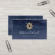 This modern nautical ship helm business card is perfect for a small business owner, consultant, stylist and more! The simple design features a gold boat wheel on a navy blue watercolor background.