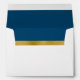 Simple and classy. Navy blue inside with a single gold, metallic looking stripe. Names and return address on the back, also in navy. The navy ink splatter that matches the other products in this suite is on the front to tie it all together.