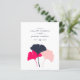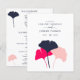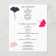 Create a bold and elegant program for your wedding. Make a statement with bold colours and a clean and simple graphic. Features illustrations of ginkgo leaves in navy blue, light blush pink and a bright coral tinged magenta.