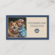 Modern Navy Beige Pet Sitting Photo Paw Print Business Card