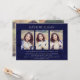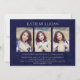 Modern, elegant, navy blue 4-photo graduation party invitation with photos on both sides of your card. Personalise with the name of your graduate, their school name, and graduation year, along with all party information.