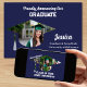 A fun and unique twist on a navy blue graduation announcement featuring 6 photos designed into the shape of a graduation cap on the front and a single photo in a graduation cap frame on the back. Personalise it with your name, graduation year, school, and any honours. All text is editable. The photos can be adjusted with the design tool if needed. Colours can be adjusted to match your school colours or party theme. If you need help with the design or matching products please email Brandi@photobooksbybrandi.com