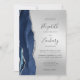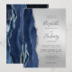 Modern Navy Blue Agate Silver Wedding Invitation