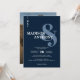 Modern Navy Blue Ampersand Script Photo Wedding Invitation