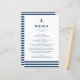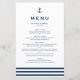 Modern Navy Blue Anchor Nautical Wedding Menu Card
