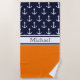 Modern Navy Blue Anchor Pattern Name Nautical Beach Towel